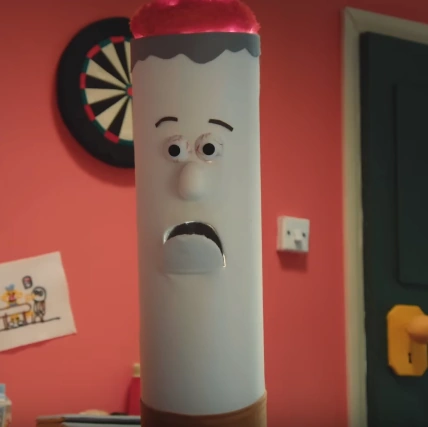 In "Don't Hug Me I'm Scared 2", a cigarette can be seen briefly in a red bowl near Red Guy.