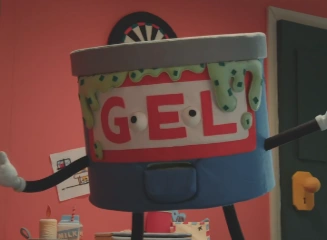 The unnamed Gel character appears in Don't Hug Me I'm Scared 6 for only a moment. He is one of the episodes many teachers. He is one of the teachers in this episode when Red Guy is trying to turn off the machine. He was going to be a future teacher who was going to teach them about gel.